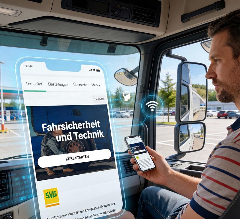 Mit den neuen E-Learning-Modulen der SVG können Berufskraftfahrer einen Teil ihrer gesetzlich vorgeschriebenen BKF-Weiterbildung direkt am Rechner, Tablet oder Mobiltelefon absolvieren.